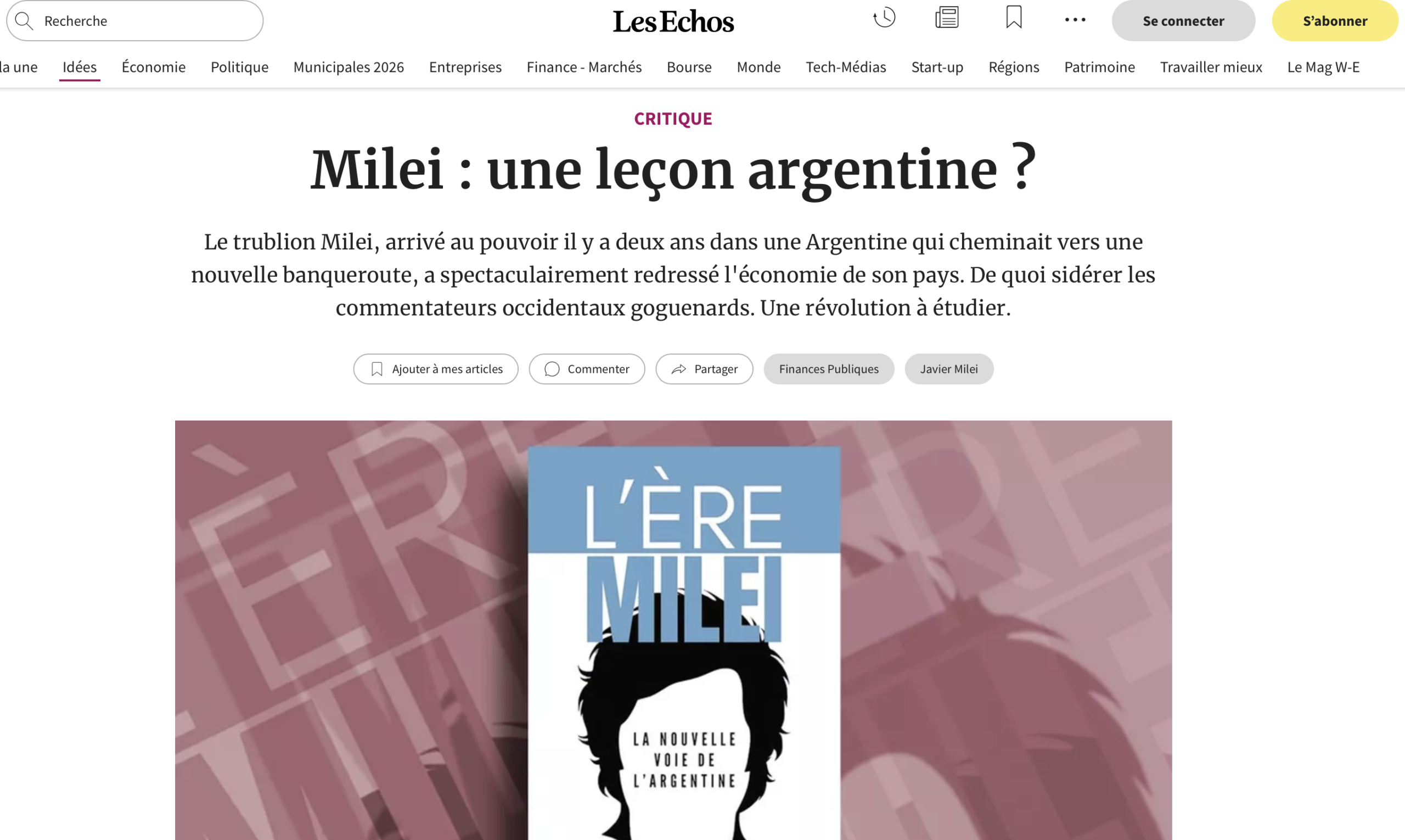 Un libro cuya reseña publica hoy el diario francés «Les Echos» analiza en clave mileísta a Milei y lo explica a sus lectores francófonos.