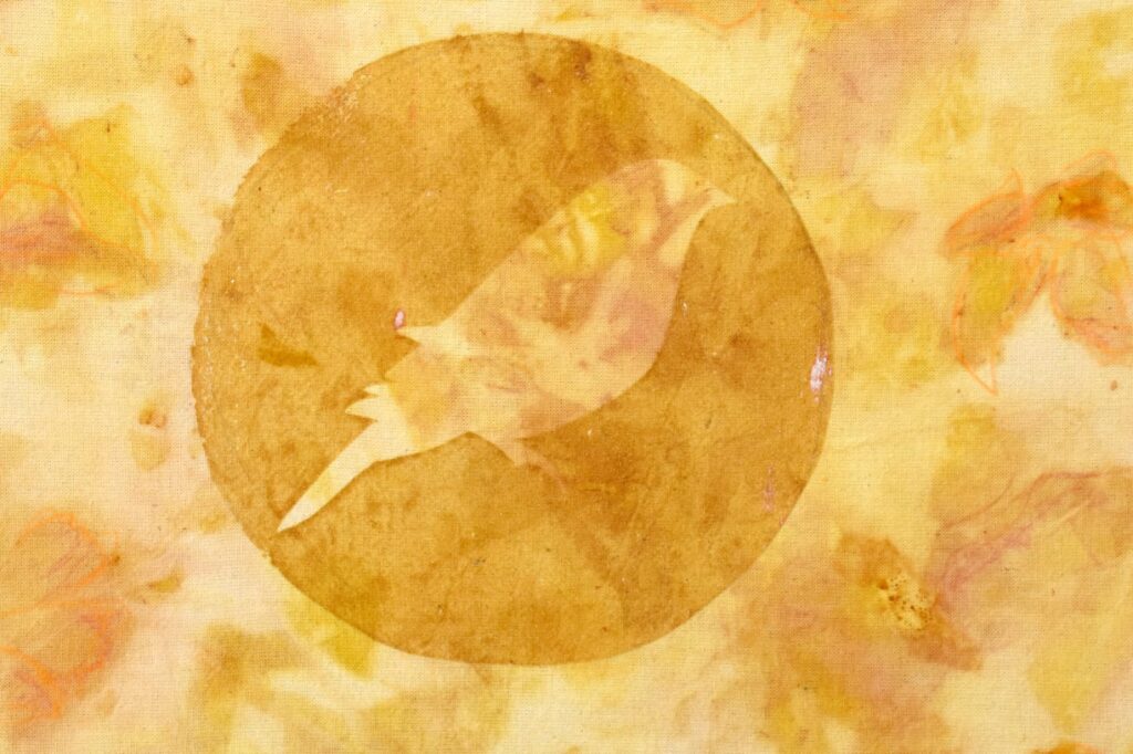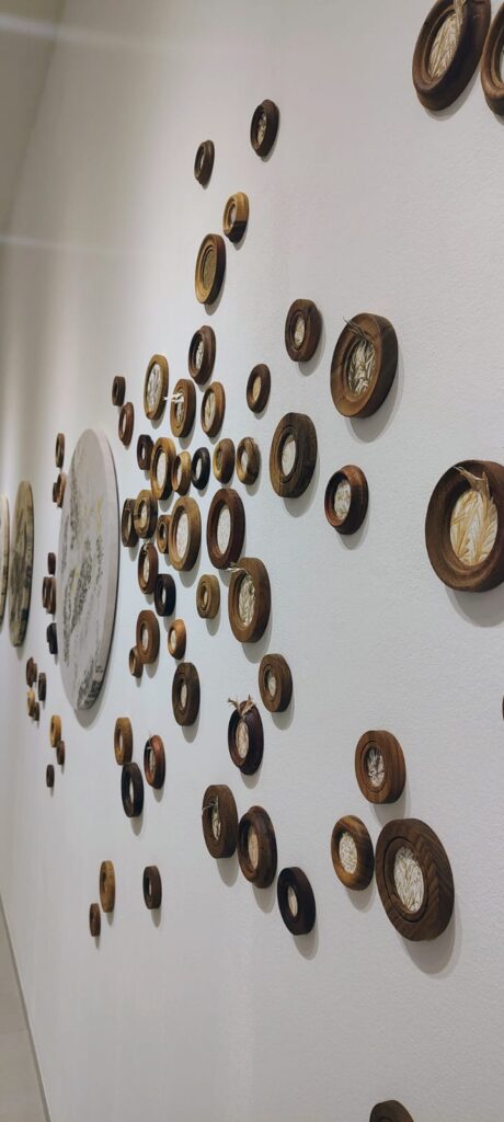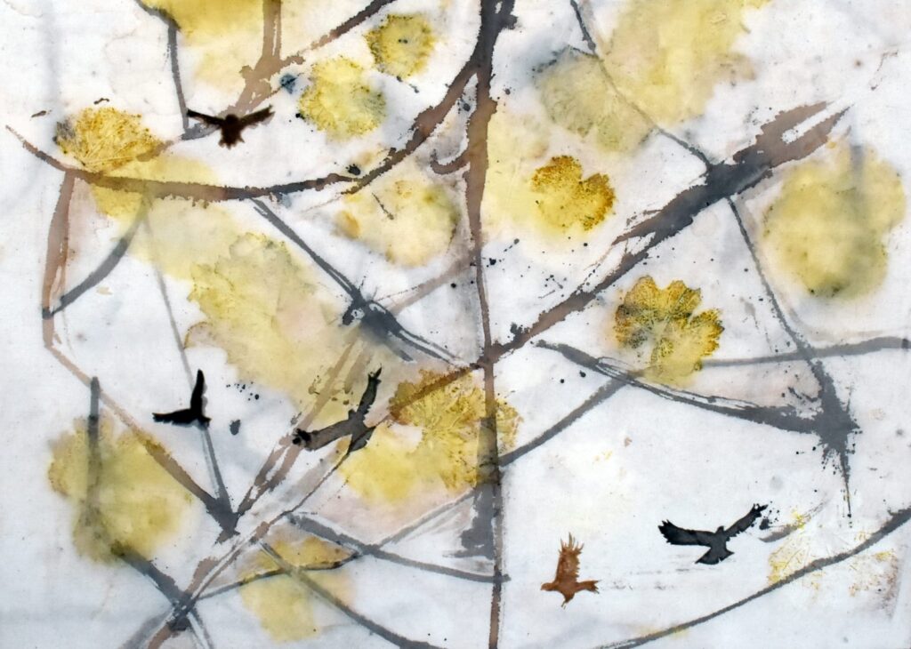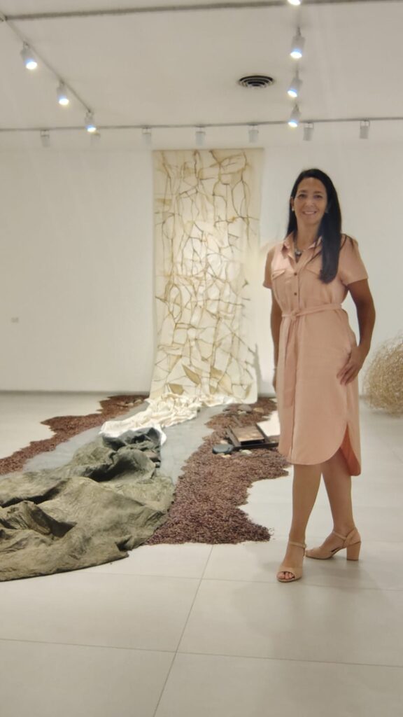 La inauguración tendrá como eje la muestra “Vuelta a Casa”, una propuesta profundamente ligada al territorio. Allí, Riera trabaja con tintes naturales elaborados a partir de descartes orgánicos —como restos de poda de olivares o pieles de cebolla— y utiliza agua de deshielo como parte del proceso creativo. El resultado es una obra que no solo se observa, sino que se siente: una reconstrucción estética de la identidad maipucina desde sus propios recursos.