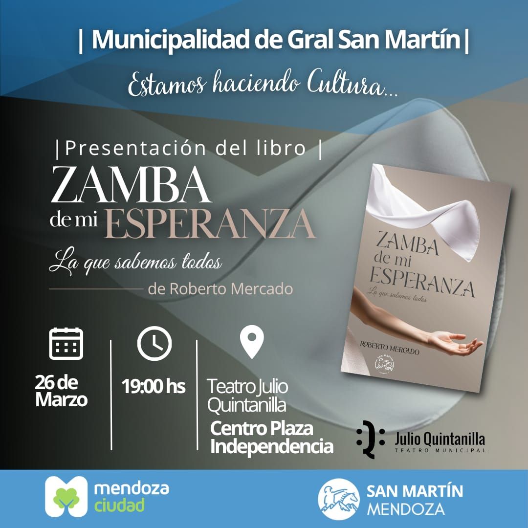 El folclorista mendocino Roberto Mercado presentará en la Ciudad de Mendoza su libro “Zamba de mi esperanza. La que sabemos todos”, en un encuentro que tendrá lugar el jueves 26 de marzo a las 19 en el Teatro Quintanilla, con entrada gratuita.