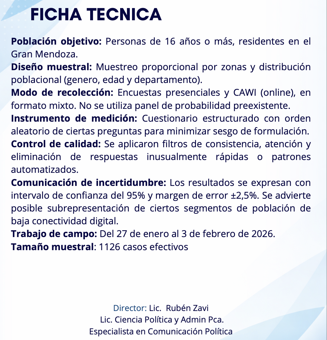 El 65% de los encuestados en el Gran Mendoza afirma que la inflación impactó “mucho” o “bastante” en su economía personal durante los últimos 30 días, pese a la desaceleración inflacionaria registrada en los datos oficiales nacionales. El relevamiento se realizó entre el 27 de enero y el 3 de febrero de 2026 sobre una muestra de 1.126 casos.