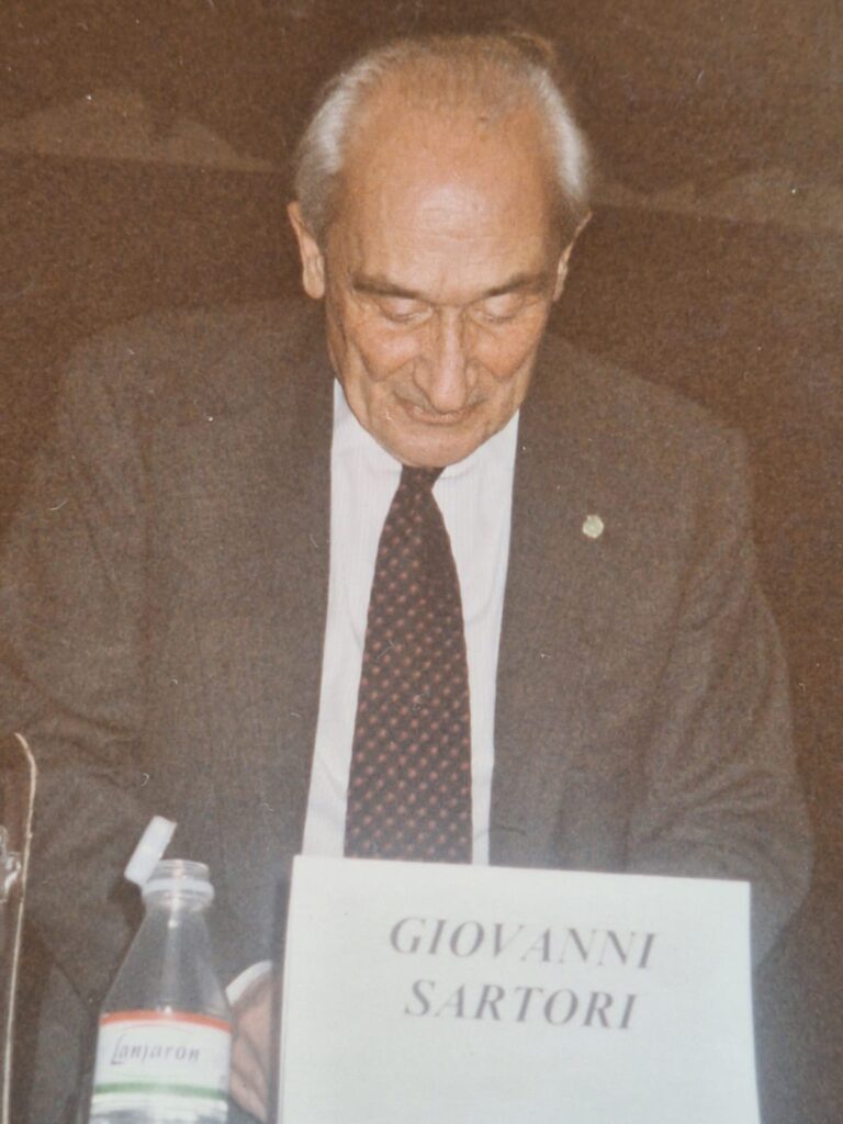Mi charla con el autor fue breve y anecdótica y se centró en Menem, que gobernaba por entonces, y que él veía más que como «un turco» como un compatriota suyo, terrible y simpático a la vez. De hecho, Sartori me hizo más preguntas de las que yo le dejé hacerle… Preocupado por la influencia negativa de la televisión —no en tono moralista, sino en el sentido de su poder hipnótico y anestésico—, el debate en Madrid se centró en una sola pregunta: «¿Prohibiría usted a un niño ver televisión?». No hablaba de pornografía ni de violencia: hablaba de moldeamiento del pensamiento. Homogeneización, en todo caso.