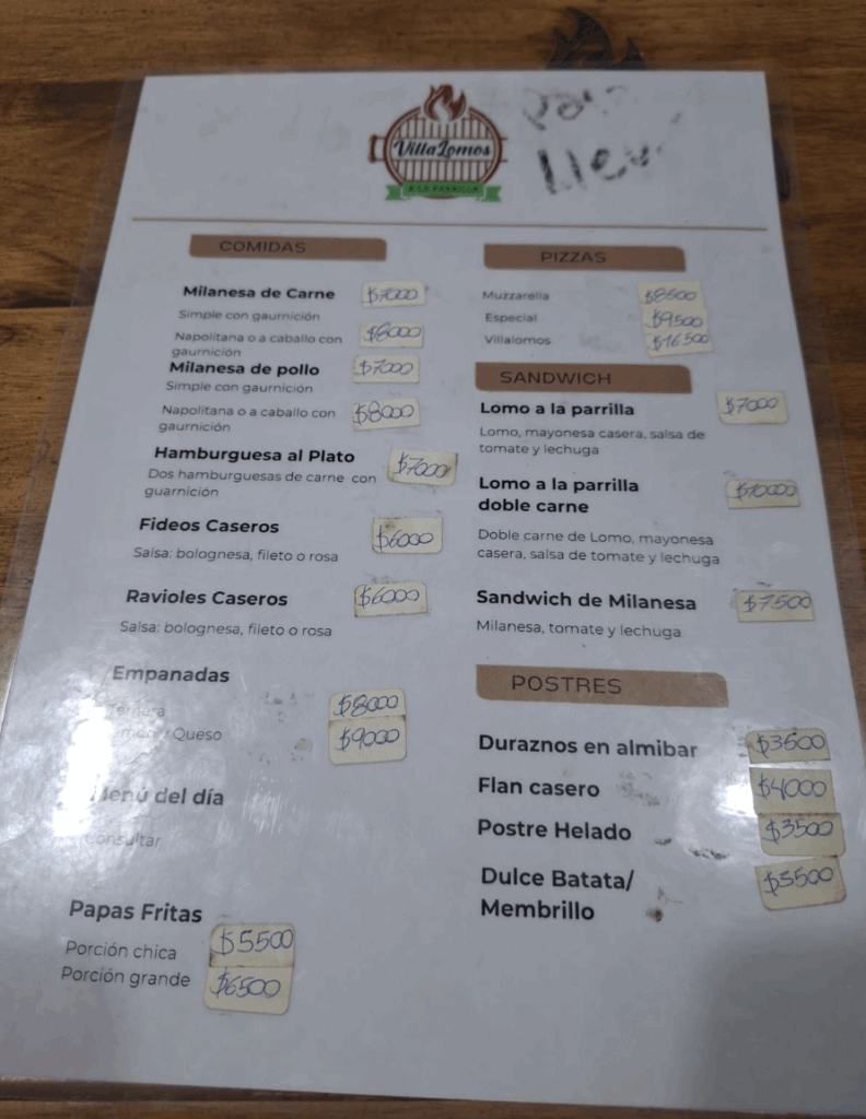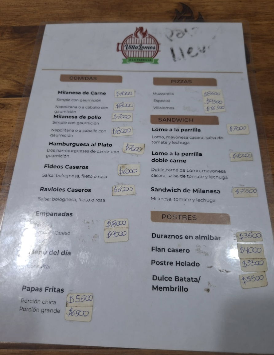 Es un buen lugar. Hay buena comida, sus lomos son épicos y los precios, no son de este país… Mirá la carta en este link: https://menu.fu.do/villalomos/qr-menu