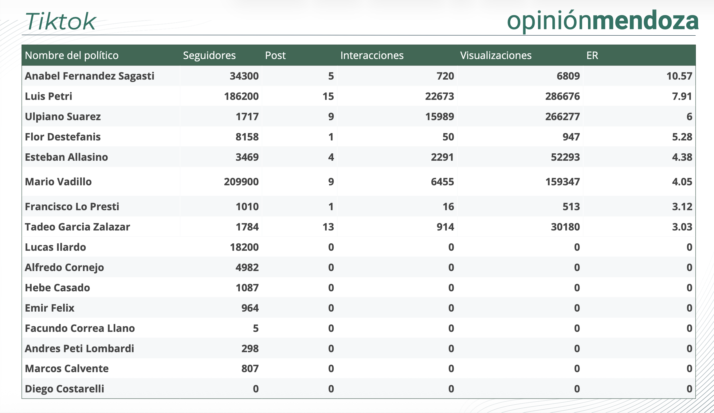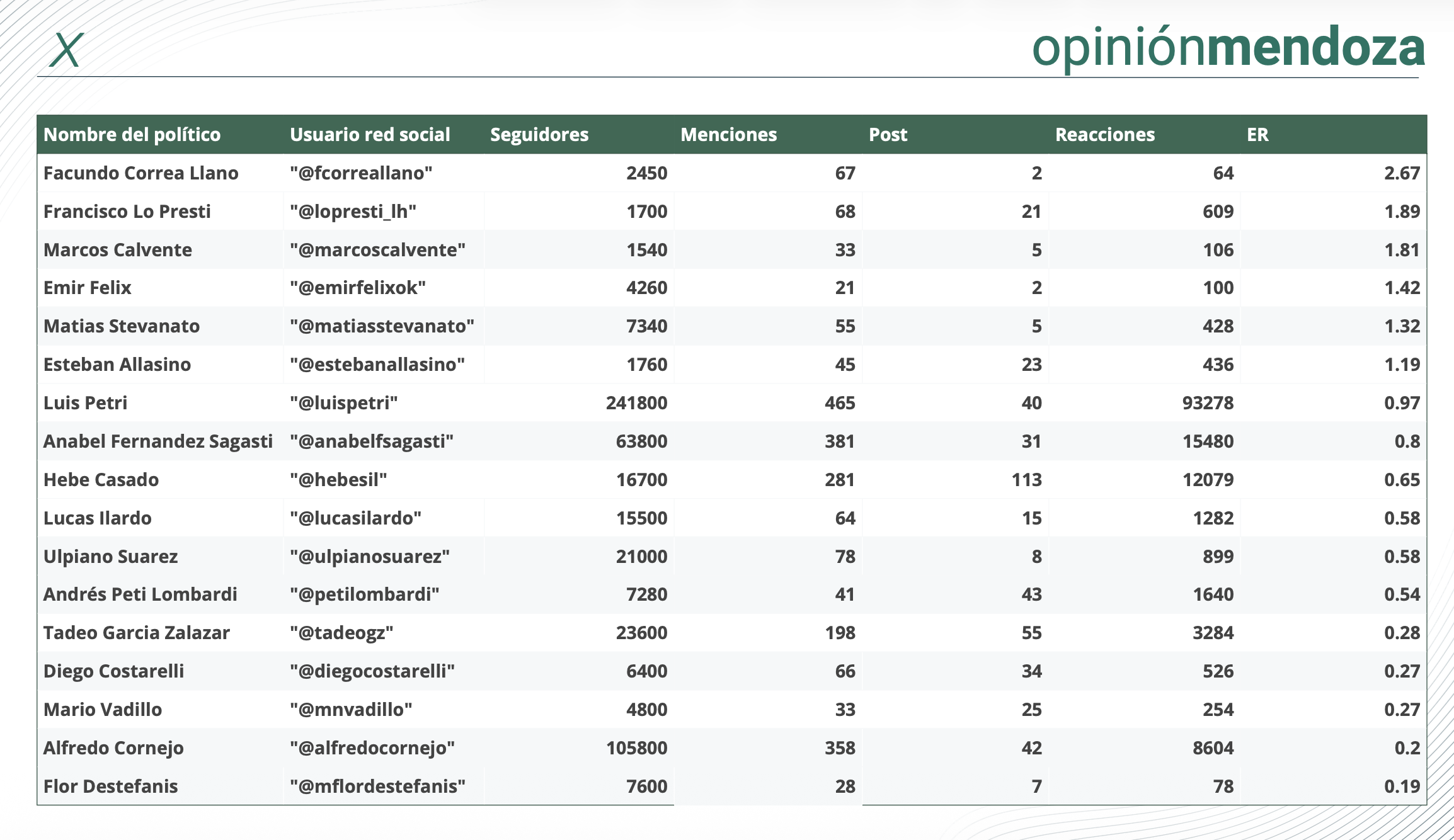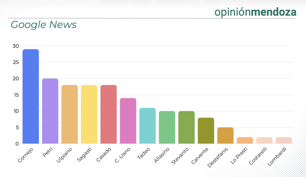 Pero hay un trabajo que en Mendoza desde hace tiempo realiza la consultora Opinión Mendoza, que es el seguimiento del comportamiento en redes sociales de los dirigentes políticos locales.
