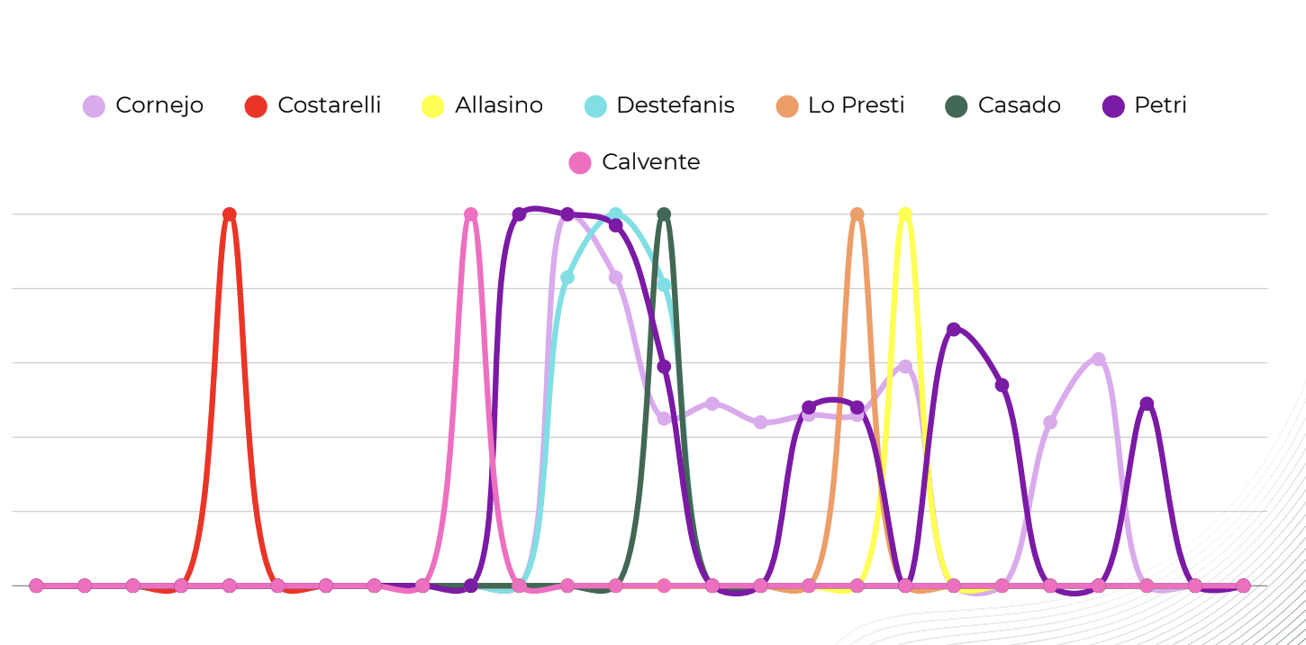 1. Dominantes de agenda. Dirigentes con capacidad de centralidad, volumen y tracción de conversación.