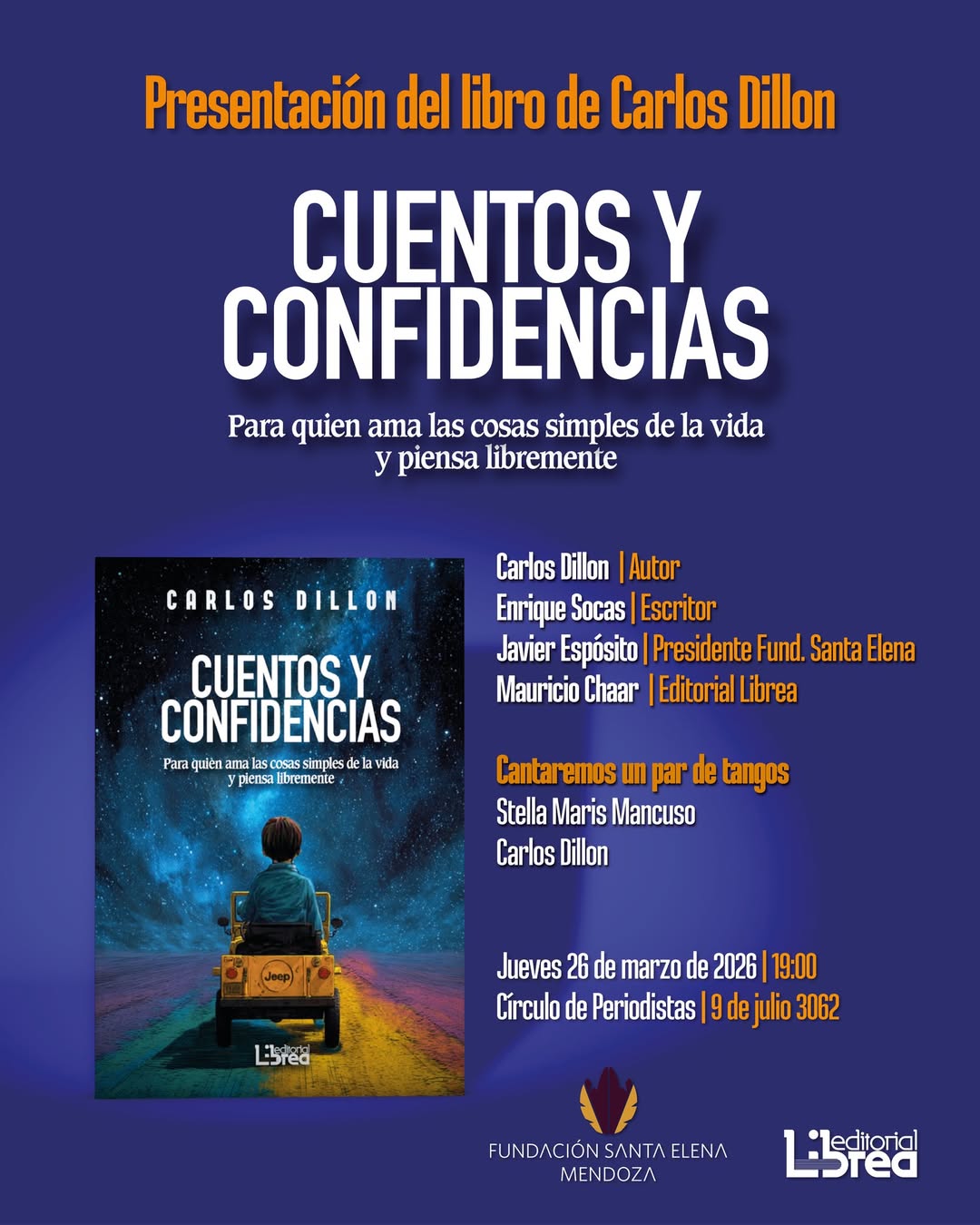 La obra, definida como una invitación “para quien ama las cosas simples de la vida y piensa libremente”, será comentada por el escritor Enrique Socas, el presidente de la Fundación Santa Elena, Javier Espósito, y el editor Mauricio Chaar, representante de Editorial Librea.