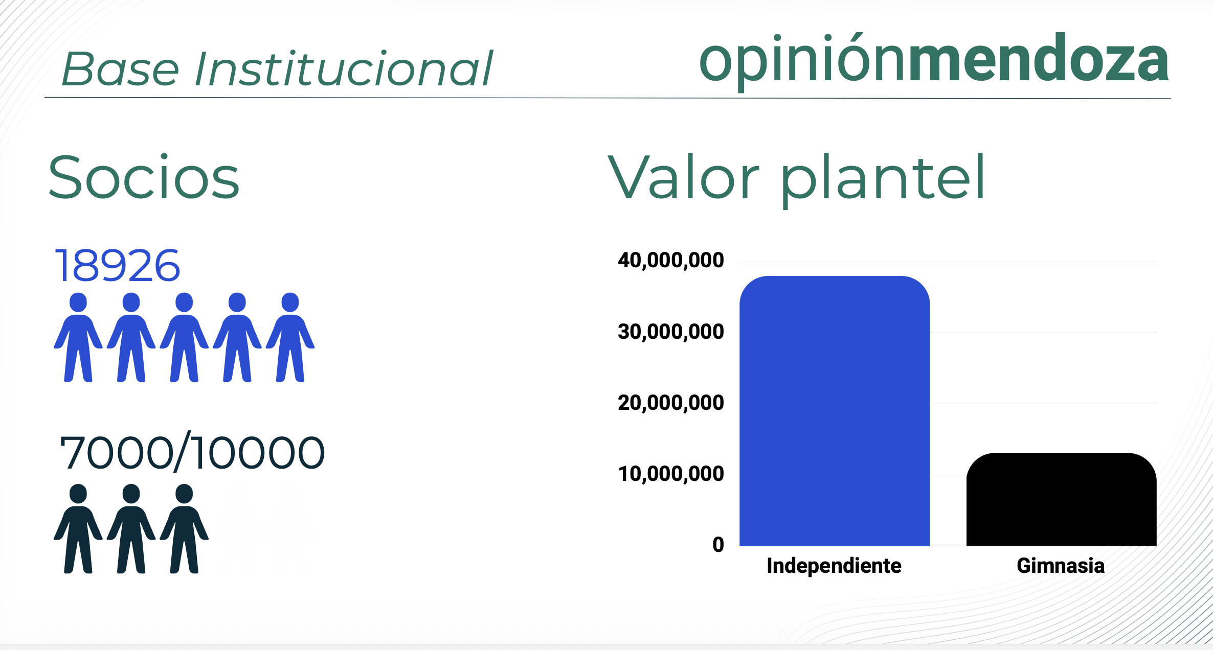 Desde una perspectiva sociológica, la pertenencia institucional marca la primera gran diferencia. Independiente Rivadavia muestra una escala estructural superior, con un registro oficial de 18.926 socios. Por su parte, Gimnasia y Esgrima oscila en una franja de entre 7.000 y 10.000 miembros.