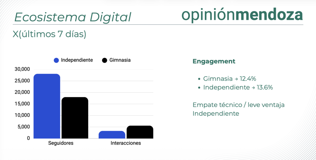 La conclusión del análisis de Opinión Mendoza es clara: existen dos modelos de funcionamiento diferenciados. Independiente Rivadavia se presenta como una estructura más distribuida, con múltiples focos de generación tanto en lo institucional como en lo deportivo. Gimnasia y Esgrima, en cambio, muestra una mayor concentración de impacto, con una dependencia más marcada de sus figuras clave para sostener su competitividad.