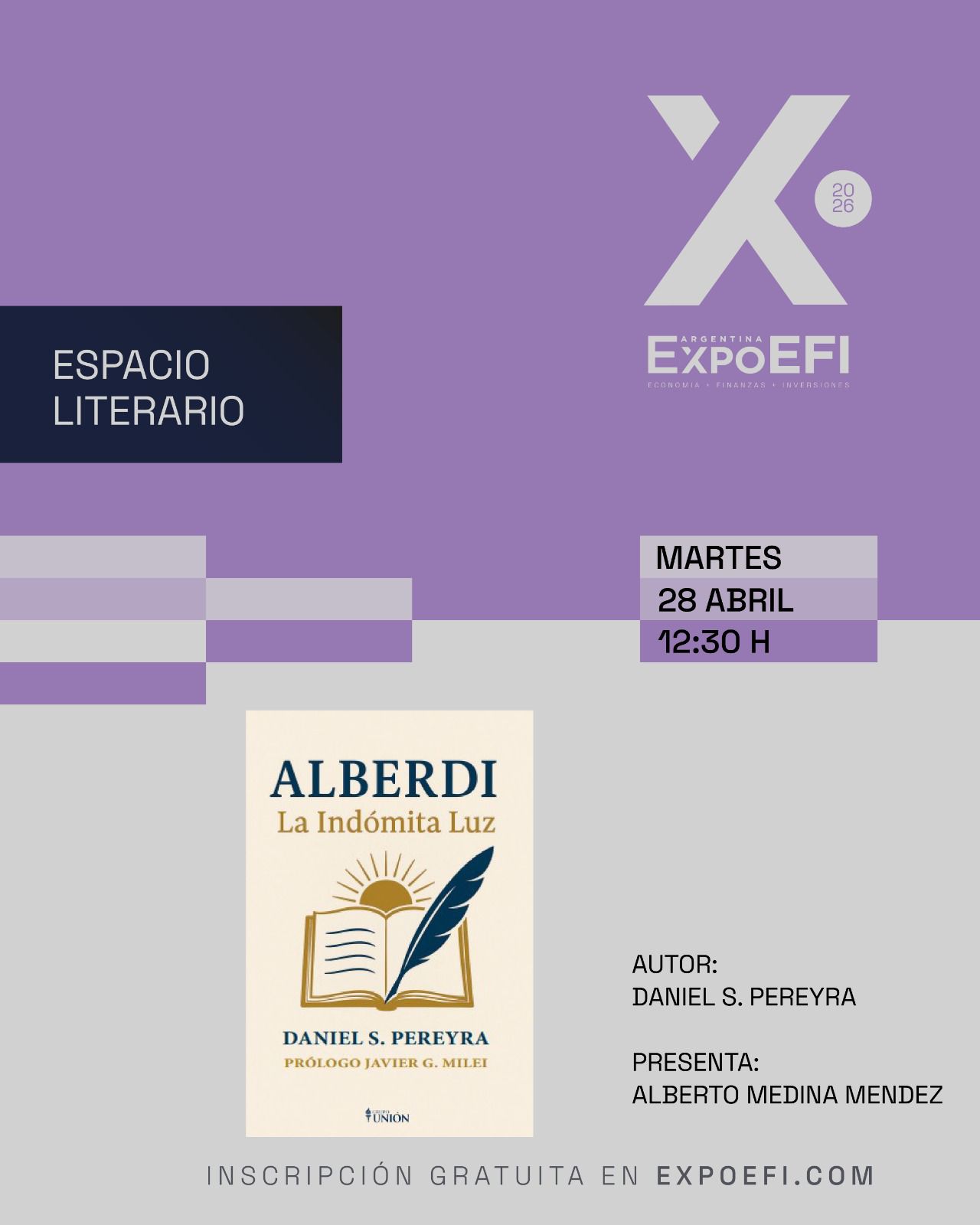 En una edición de la Expo EFI marcada por la presencia de las máximas autoridades del país y el debate sobre el nuevo modelo de crecimiento, las ideas fundacionales de la Argentina vuelven a escena. Este martes 28 de abril, a las 12:30 horas, el escritor y miembro fundador de la Fundación Alberdi, Daniel Pereyra, presentará su obra Alberdi, la indómita luz.