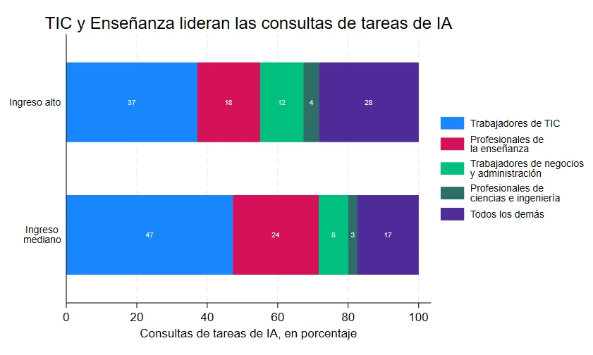 En los países de ingresos medios, la utilización de IA está altamente concentrada en dos grupos profesionales: